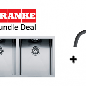 Franke Planar Undermount Stainless Steel Double Bowl Sink With Franke Lina Mixer Tap In Onyx Black